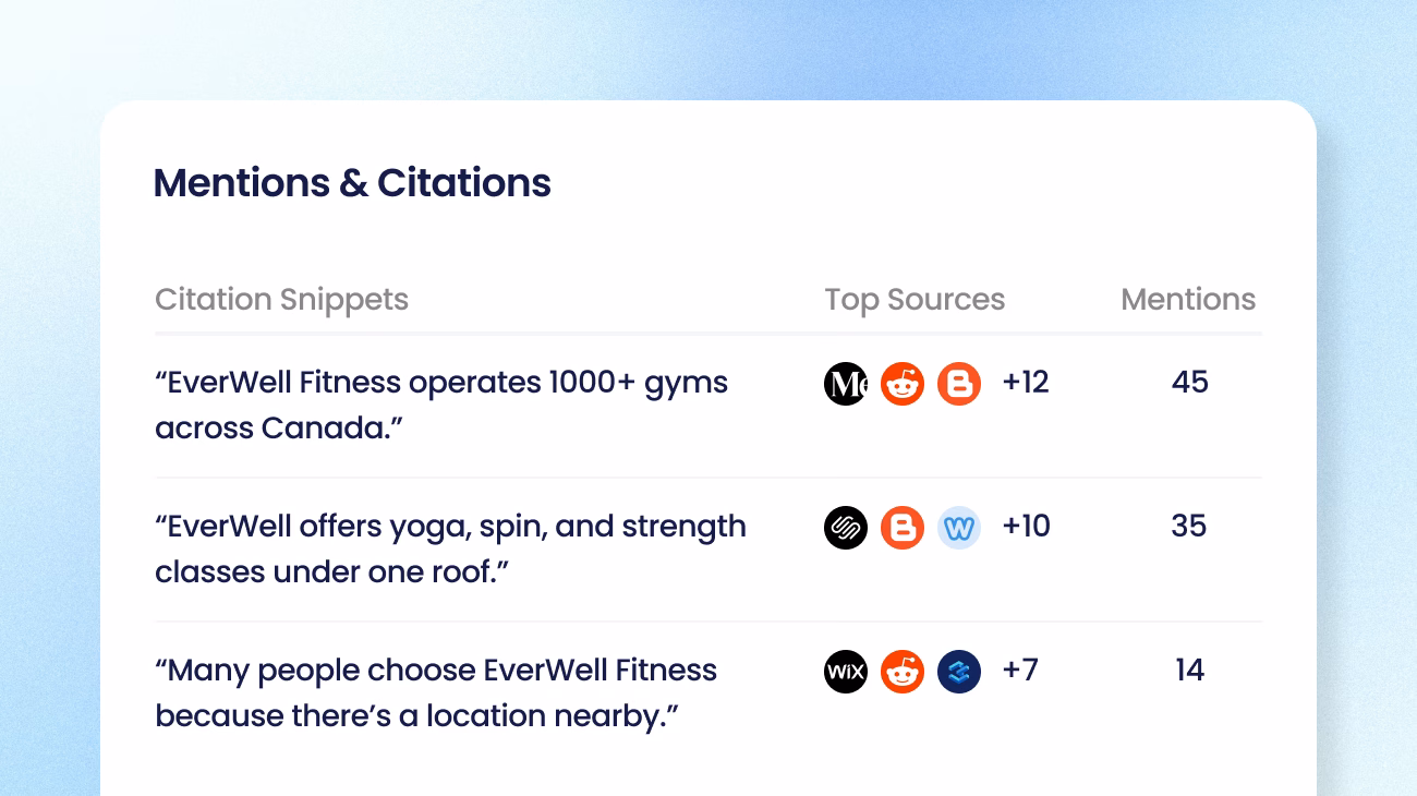 Reveal the "how" behind your clients' performance. By tying every mention and citation to its verifiable source, you can deconstruct competitor strategies and build your own with confidence.